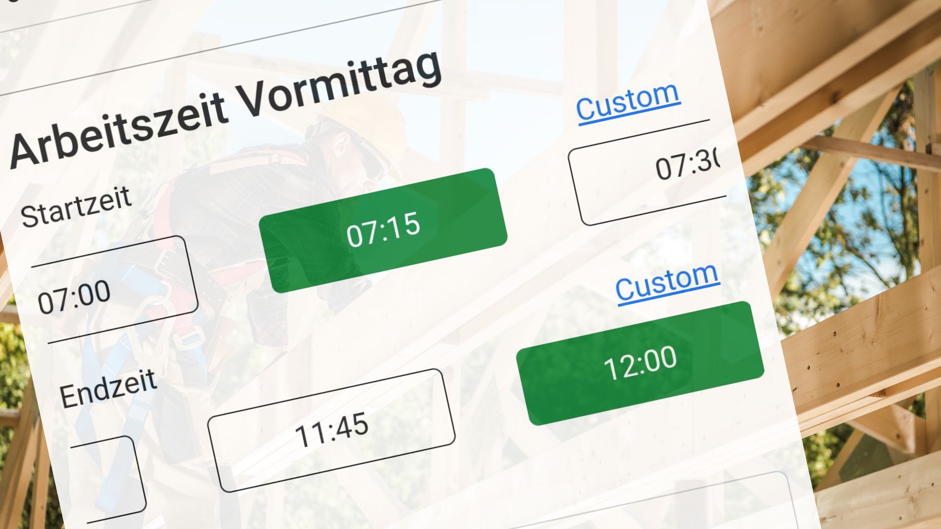 Anfangs- und Schlusszeiten kannst du zum Projektstart selber definieren. Sollte ein Mitarbeiter aus bestimmten Gründen mal später Anfangen, hat er immer noch die Möglichkeit Zeit manuell zu erfassen.