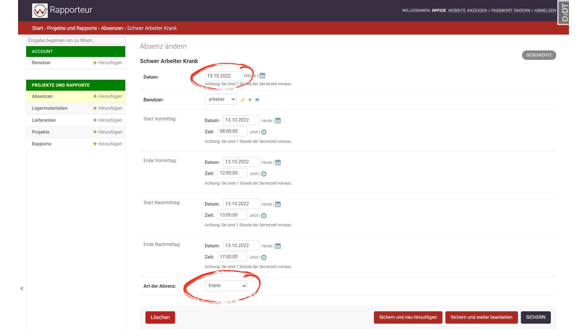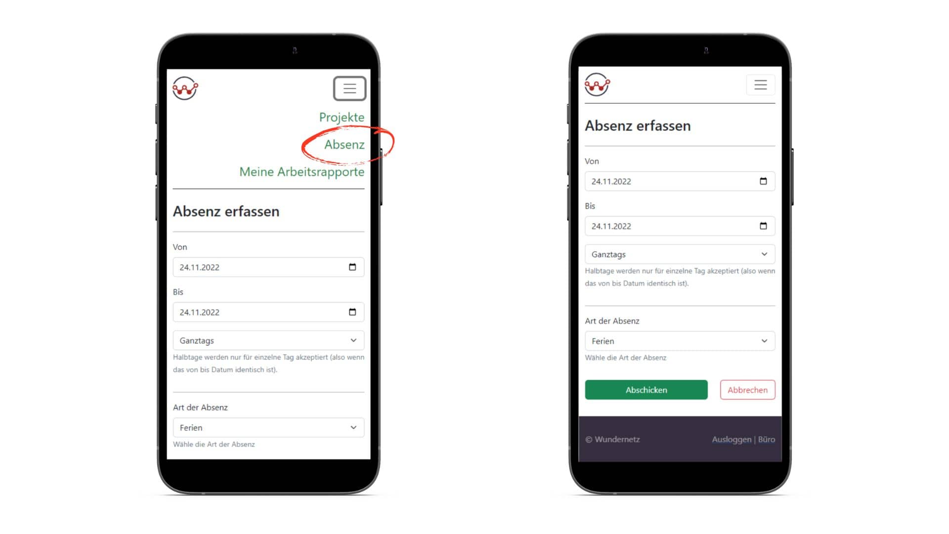 Absenzen als Mitarbeiter erfassen