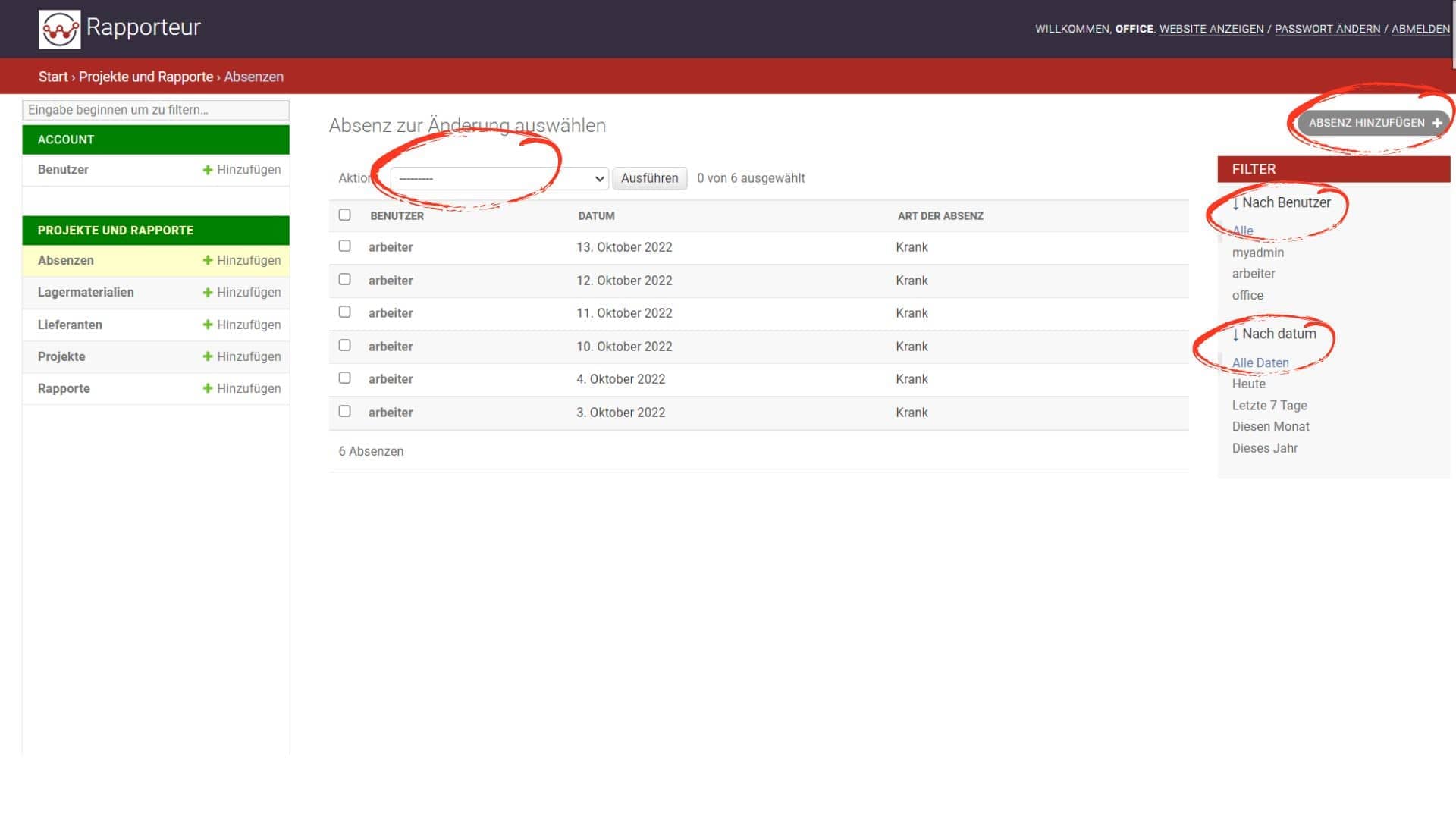 Absenzen aus Bürosicht
