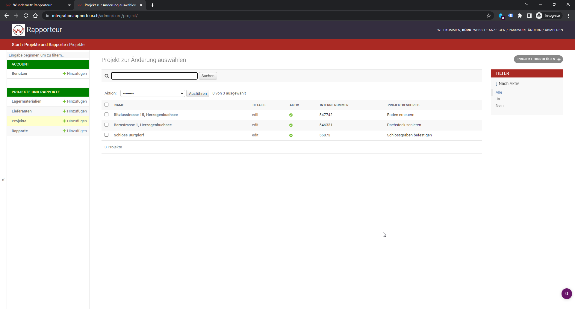 Damit ist auch bereits alles gemacht, so dass Rapporte erfasst werden können. Sobald die ersten Rapporte vorhanden sind, können:
