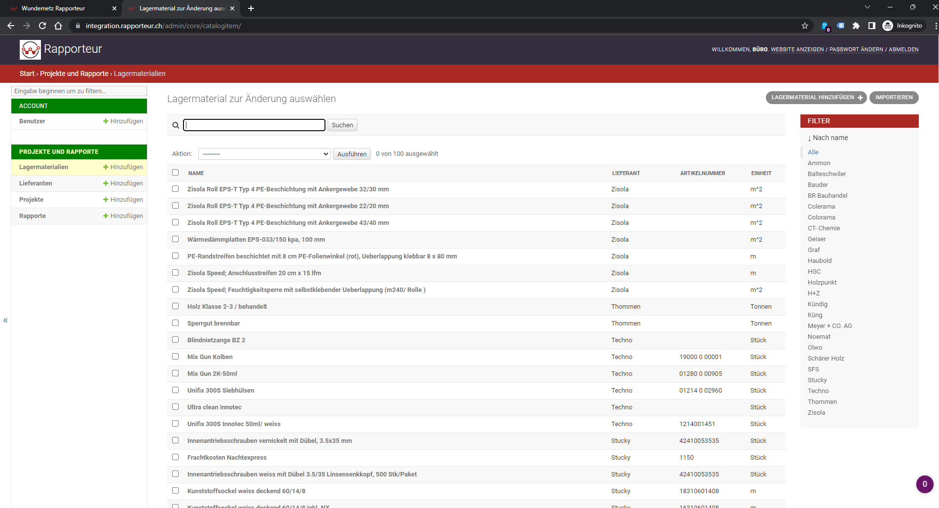 Material und Zeit auf Projekten auswerten